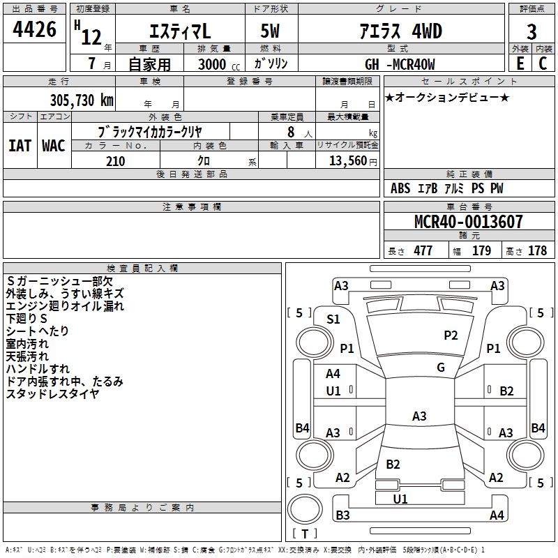 TOYOTA ESTIMA L AERAS 4WD - лот 4426