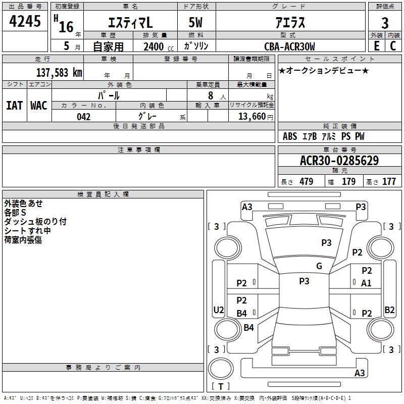 TOYOTA ESTIMA L AERAS - лот 4245