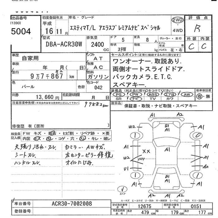 TOYOTA ESTIMA L AERAS PREMIUM NAVIGATION SPECIAL 2WD - лот 5004