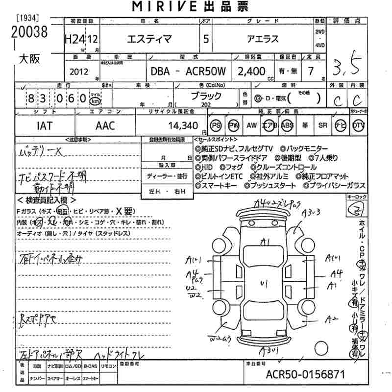 TOYOTA ESTIMA - лот 20038