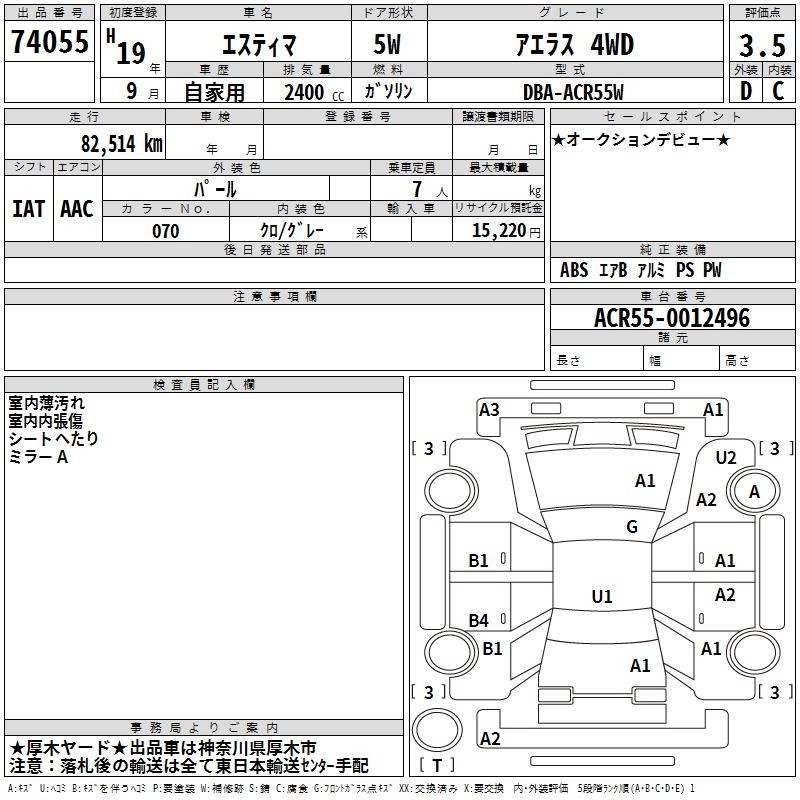 TOYOTA ESTIMA - лот 74055