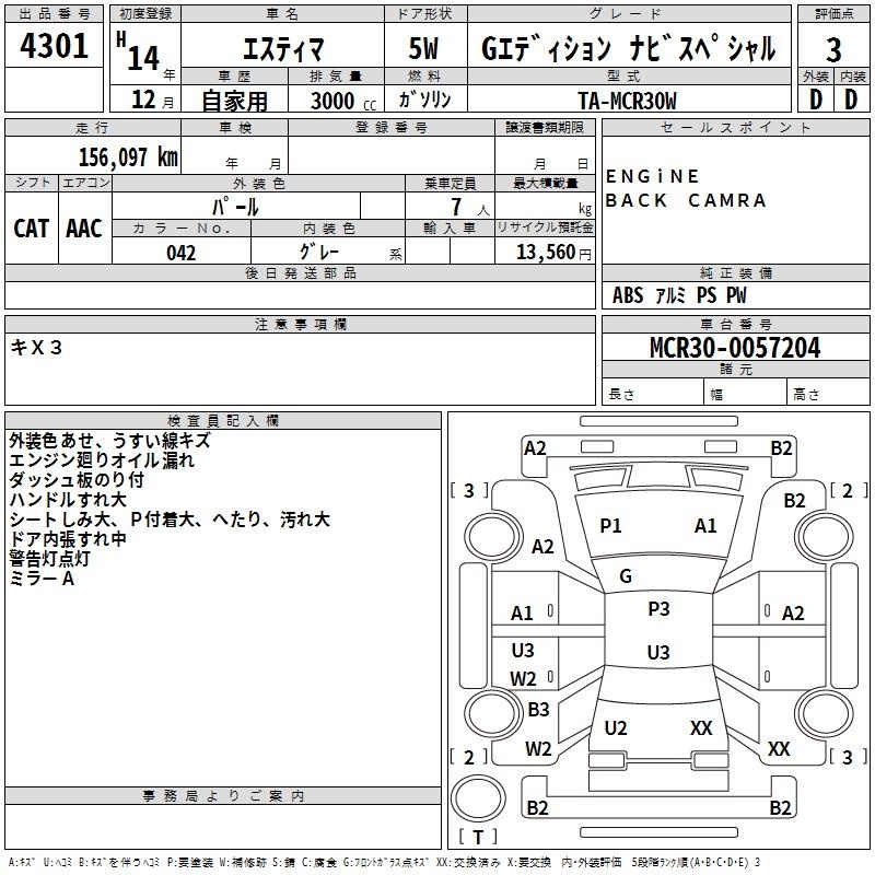 TOYOTA ESTIMA - лот 4301