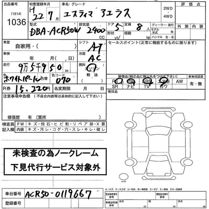 TOYOTA ESTIMA - лот 1036