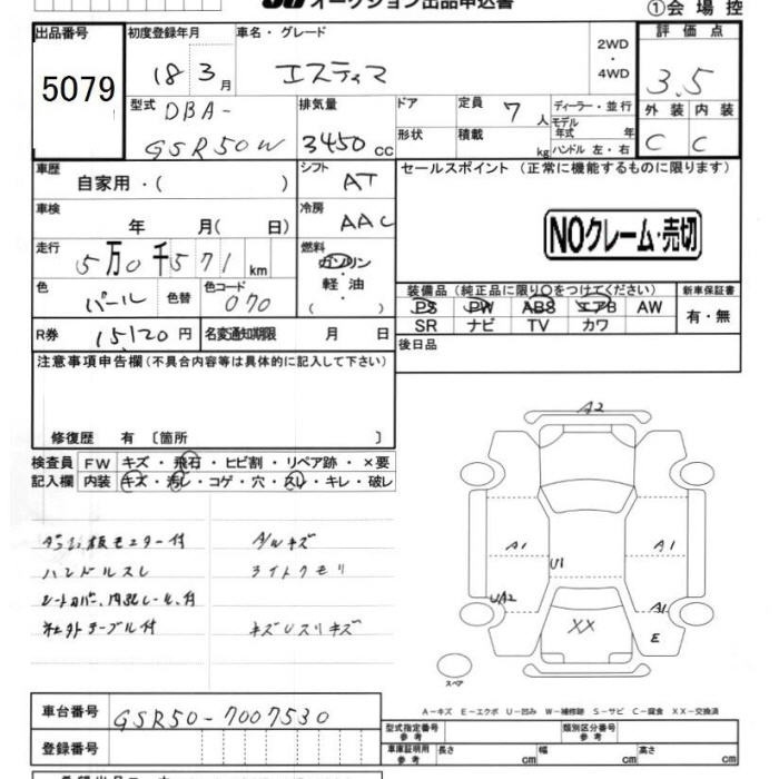 TOYOTA ESTIMA - лот 5079