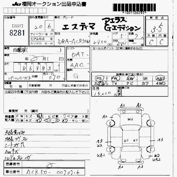 TOYOTA ESTIMA - лот 8281