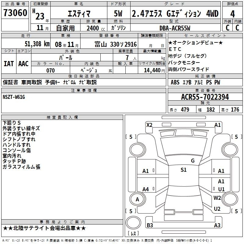 TOYOTA ESTIMA - лот 73060