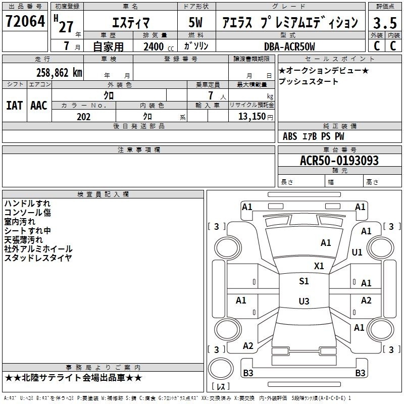 TOYOTA ESTIMA - лот 72064