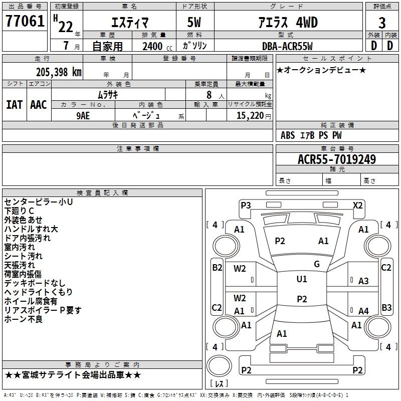 TOYOTA ESTIMA - лот 77061