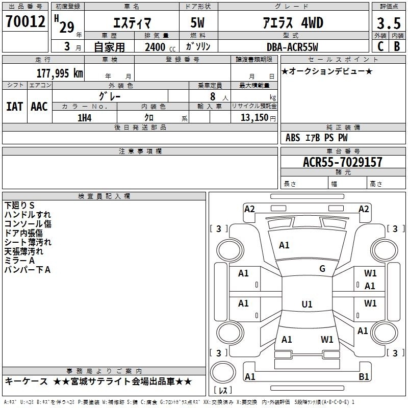 TOYOTA ESTIMA - лот 70012