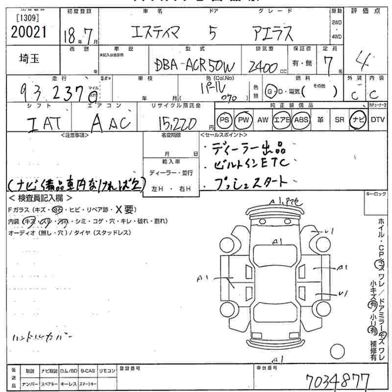 TOYOTA ESTIMA - лот 20021