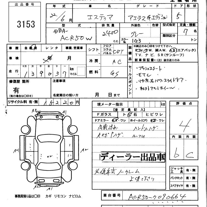 Все аукционы TOYOTA ESTIMA