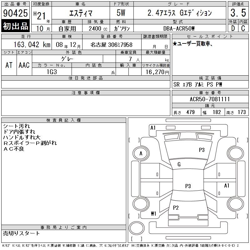 TOYOTA ESTIMA - лот 90425
