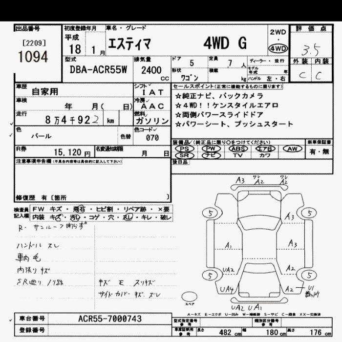 TOYOTA ESTIMA - лот 1094
