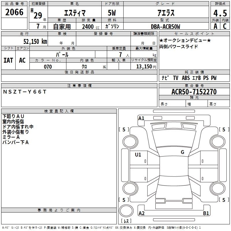 TOYOTA ESTIMA - лот 2066