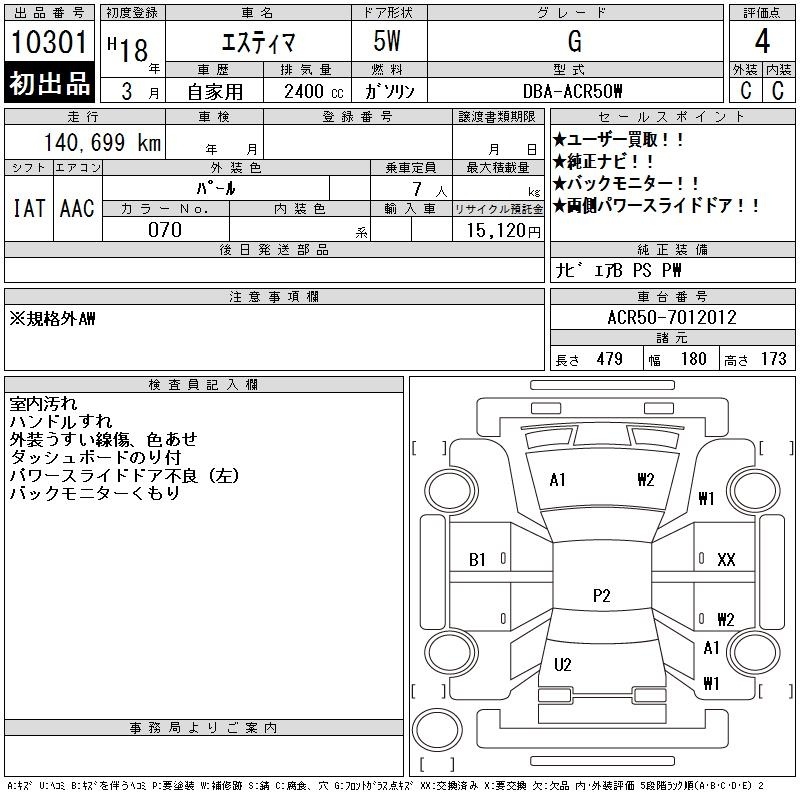 TOYOTA ESTIMA - лот 10301