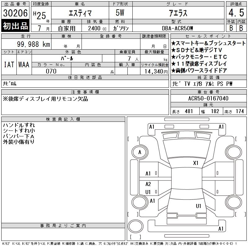 TOYOTA ESTIMA - лот 30206