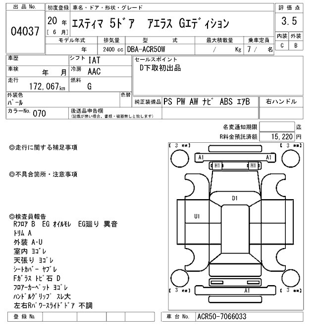 TOYOTA ESTIMA - лот 4037