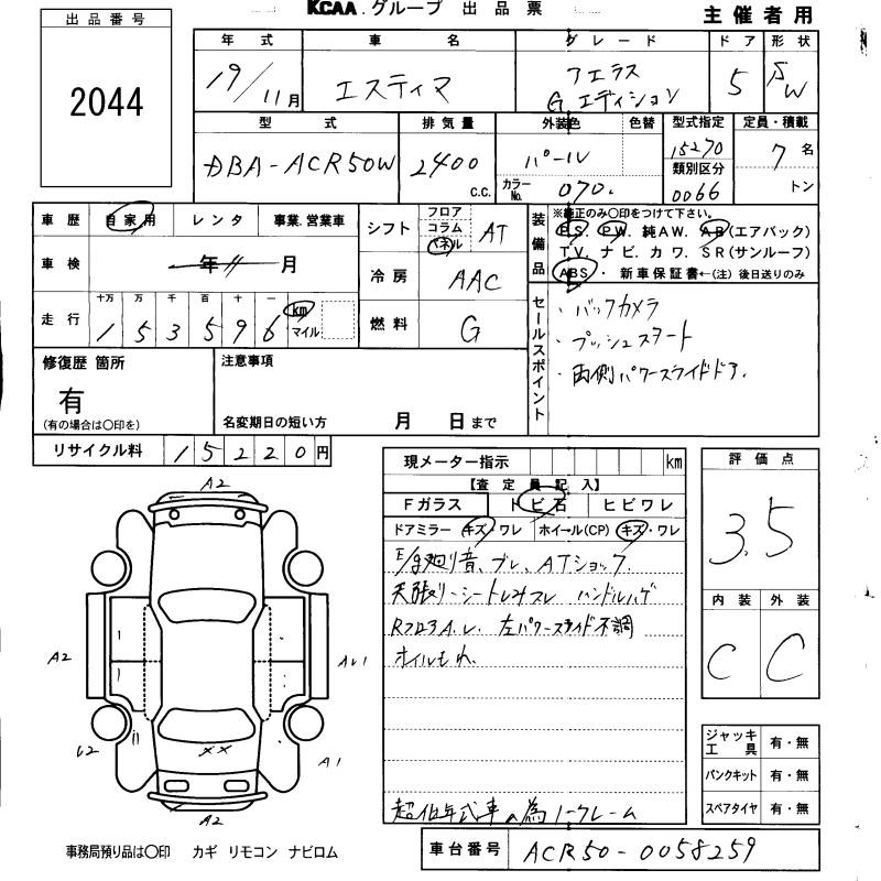 TOYOTA ESTIMA - лот 2044