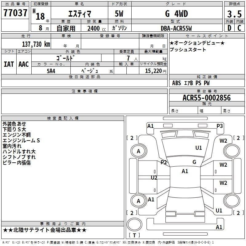 TOYOTA ESTIMA - лот 77037