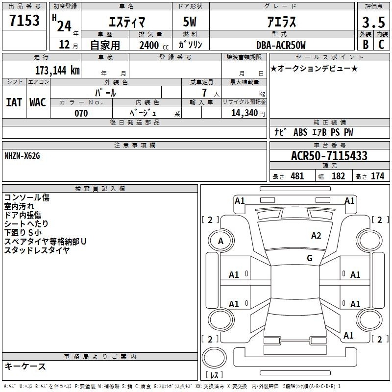 TOYOTA ESTIMA - лот 7153
