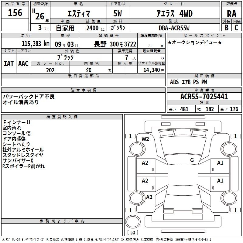 TOYOTA ESTIMA - лот 156