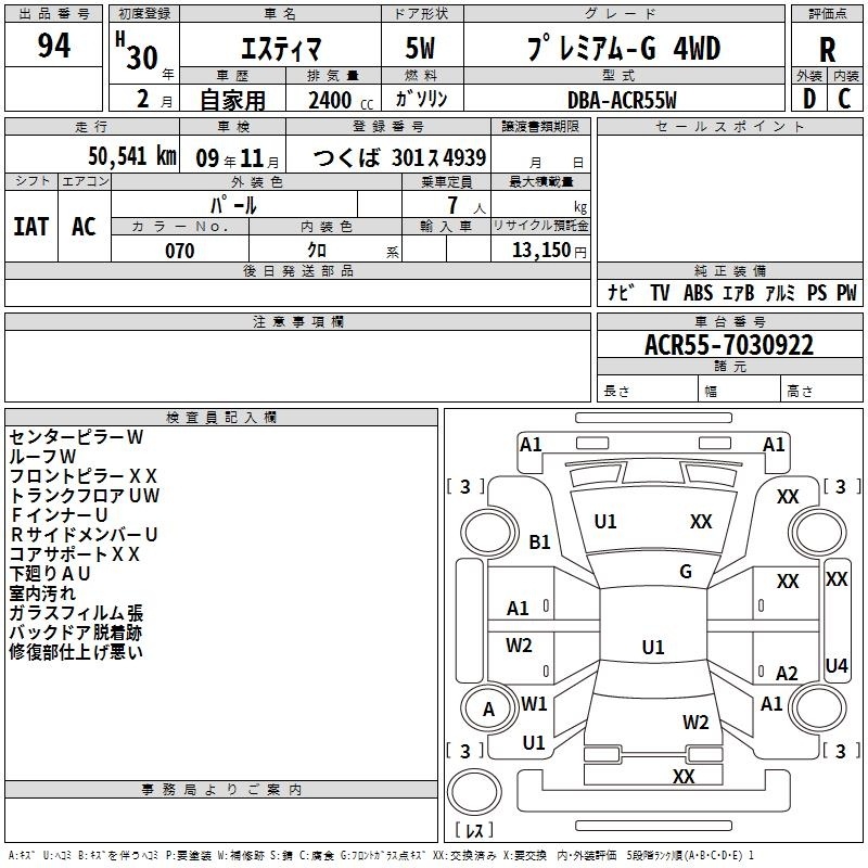 TOYOTA ESTIMA - лот 94