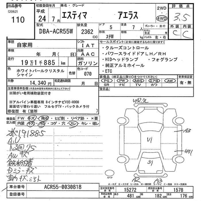 TOYOTA ESTIMA - лот 110