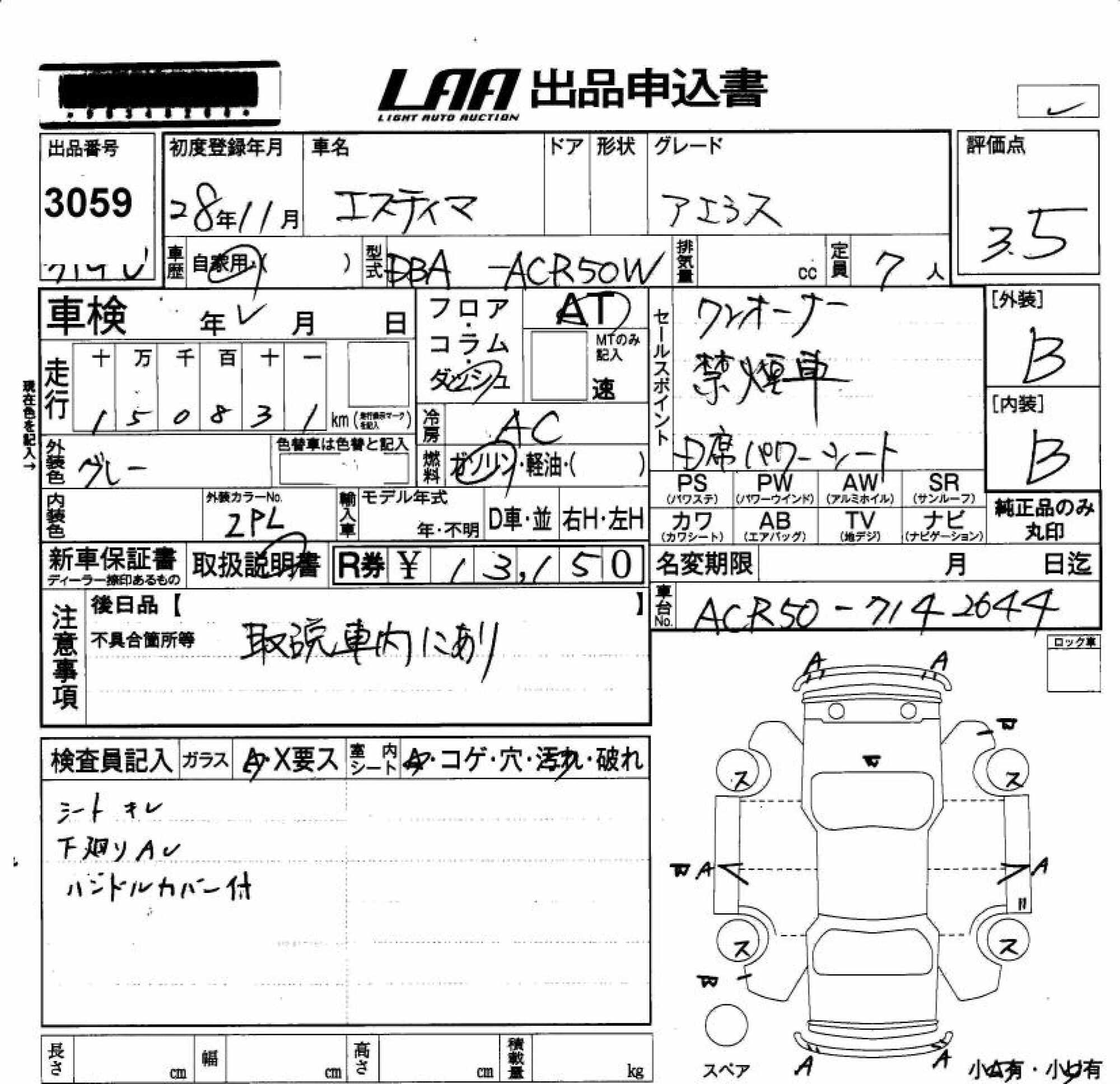 TOYOTA ESTIMA - лот 3059