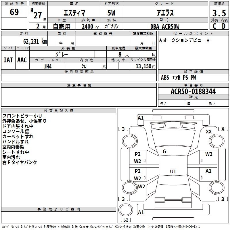 TOYOTA ESTIMA - лот 69