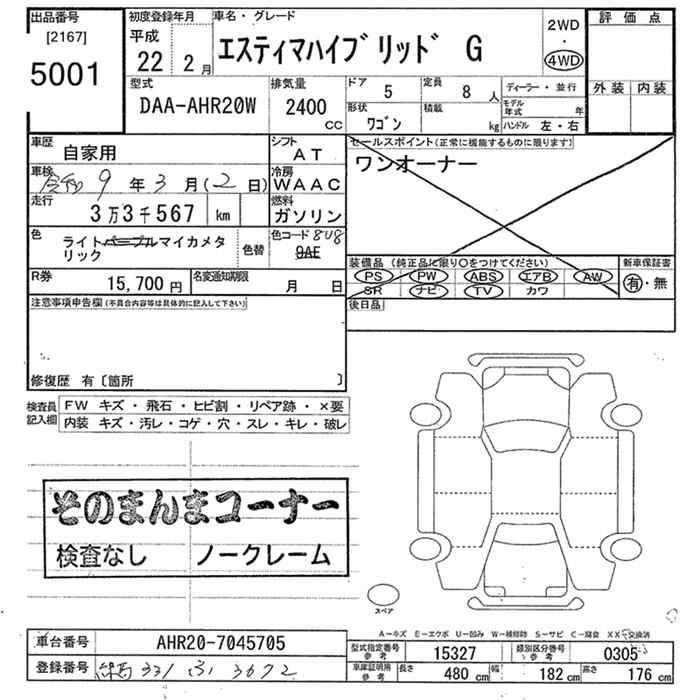 TOYOTA ESTIMA - лот 5001