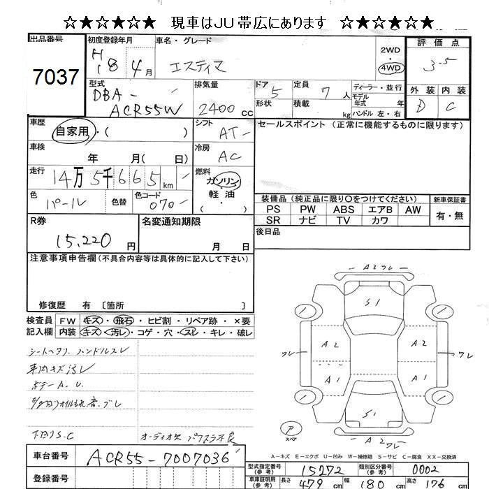 TOYOTA ESTIMA - лот 7037