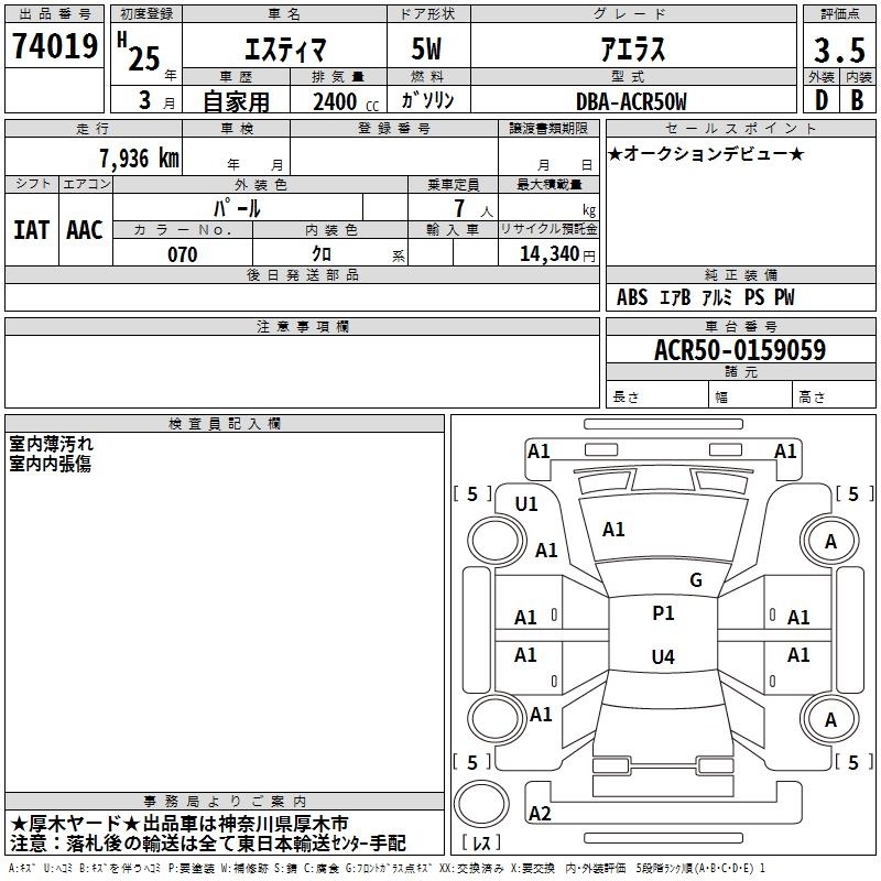 TOYOTA ESTIMA - лот 74019