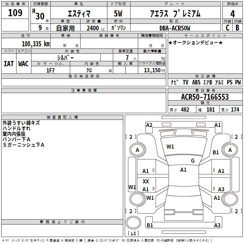 TOYOTA ESTIMA - лот 109