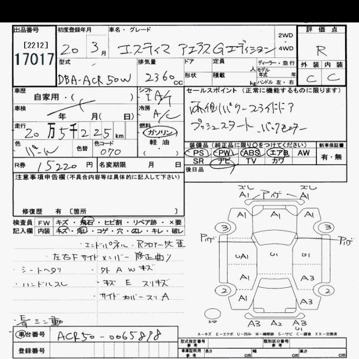 TOYOTA ESTIMA - лот 17017