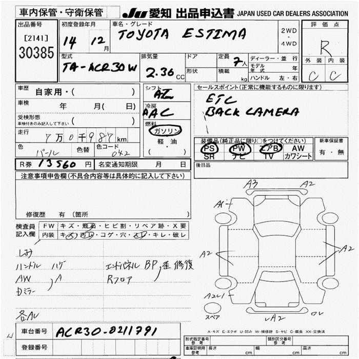 TOYOTA ESTIMA - лот 30385