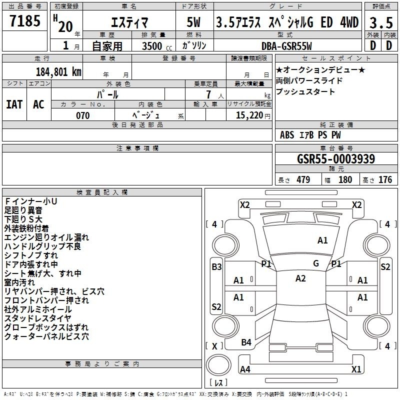 TOYOTA ESTIMA - лот 7185