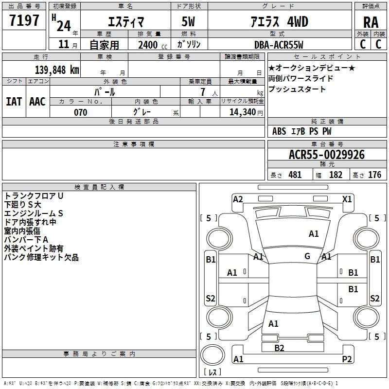 TOYOTA ESTIMA - лот 7197