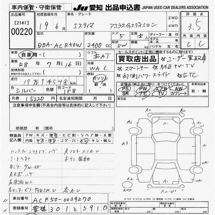 TOYOTA ESTIMA - лот 220