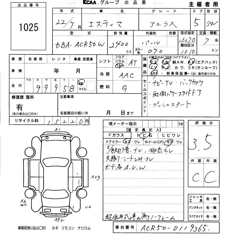 TOYOTA ESTIMA - лот 1025