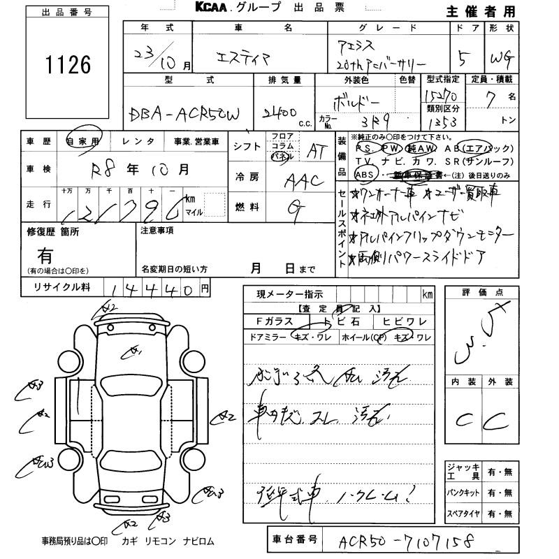 TOYOTA ESTIMA - лот 1126