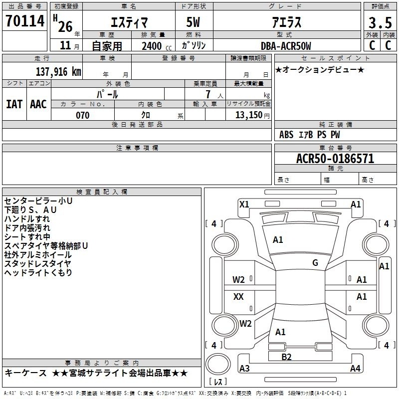 TOYOTA ESTIMA - лот 70114