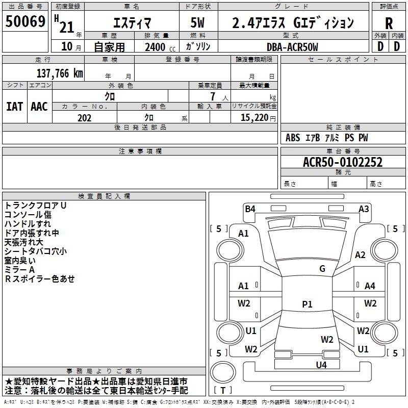 TOYOTA ESTIMA - лот 50069