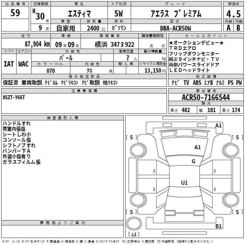 TOYOTA ESTIMA - лот 59