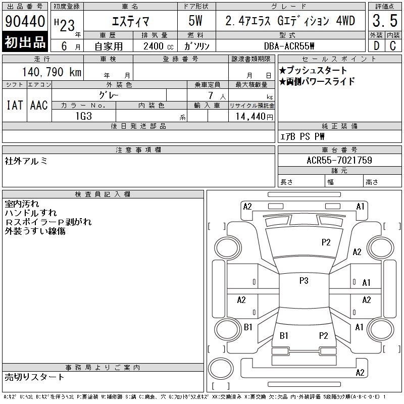 TOYOTA ESTIMA - лот 90440