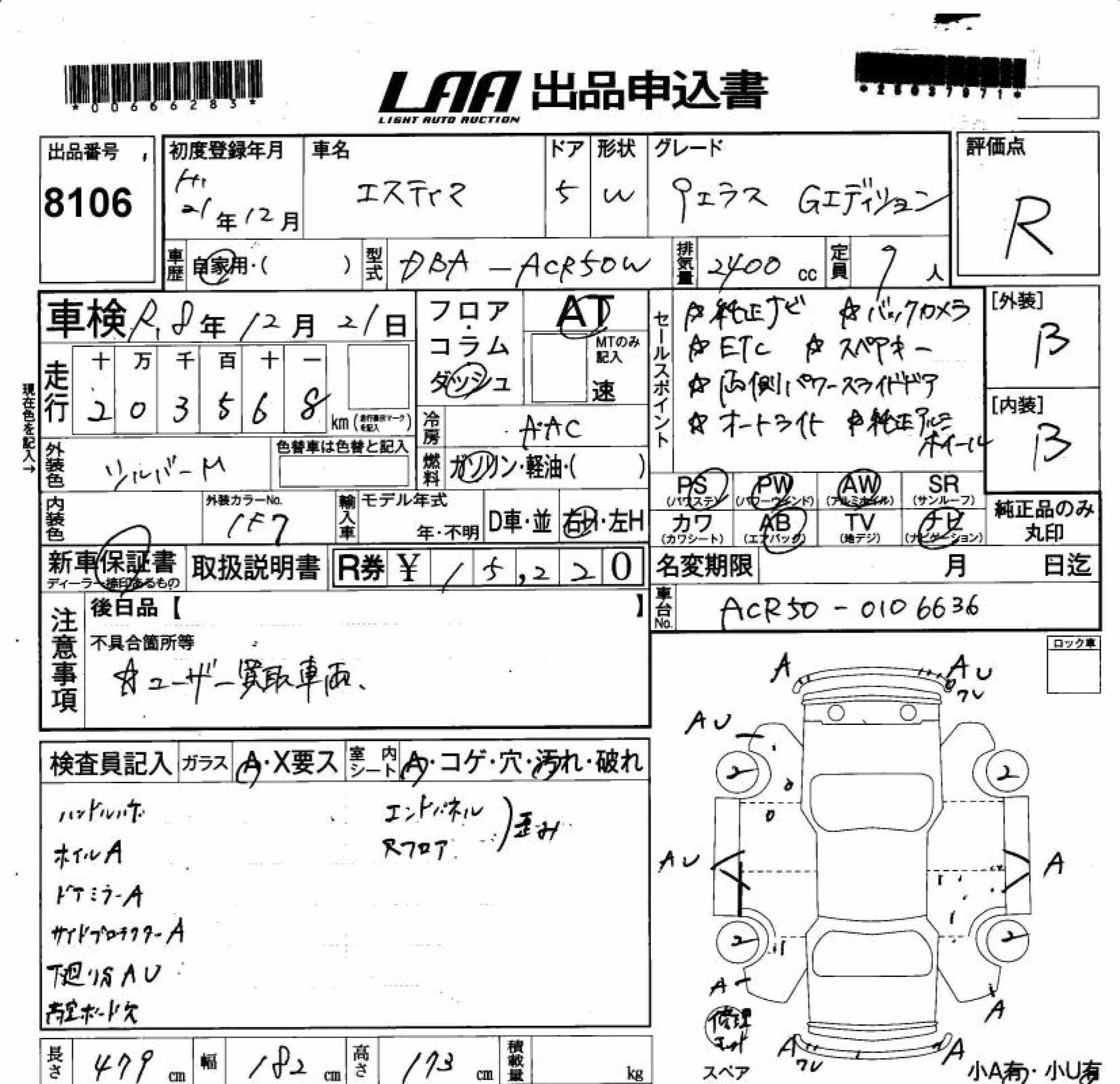 TOYOTA ESTIMA - лот 8106