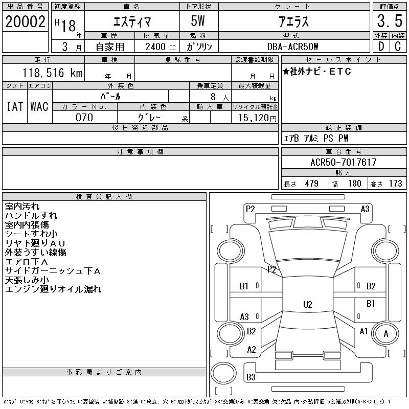 TOYOTA ESTIMA - лот 20002