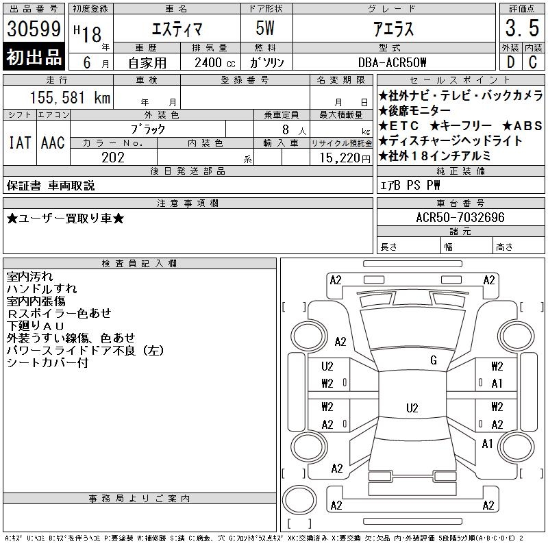 TOYOTA ESTIMA - лот 30599