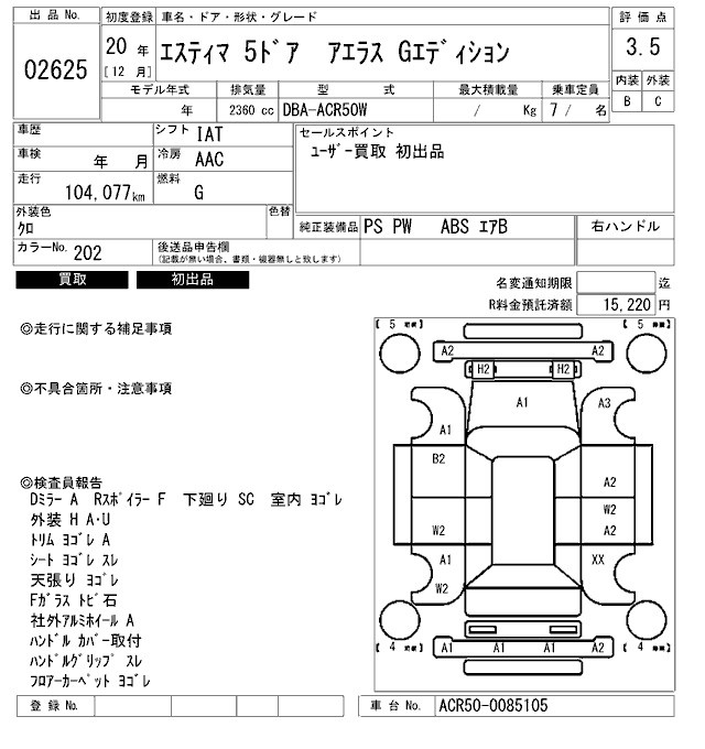 TOYOTA ESTIMA - лот 2625