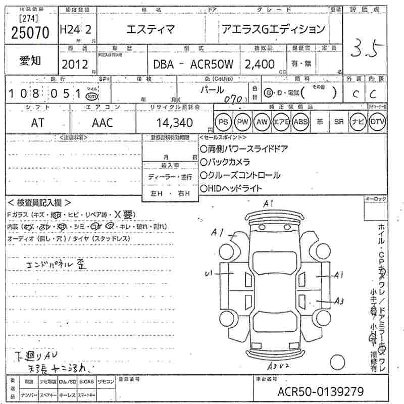 TOYOTA ESTIMA - лот 25070