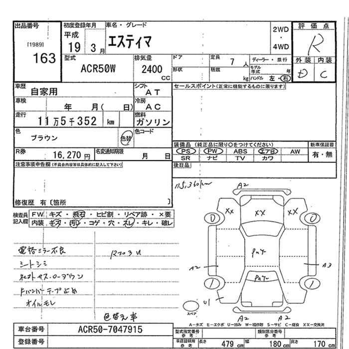 TOYOTA ESTIMA - лот 163